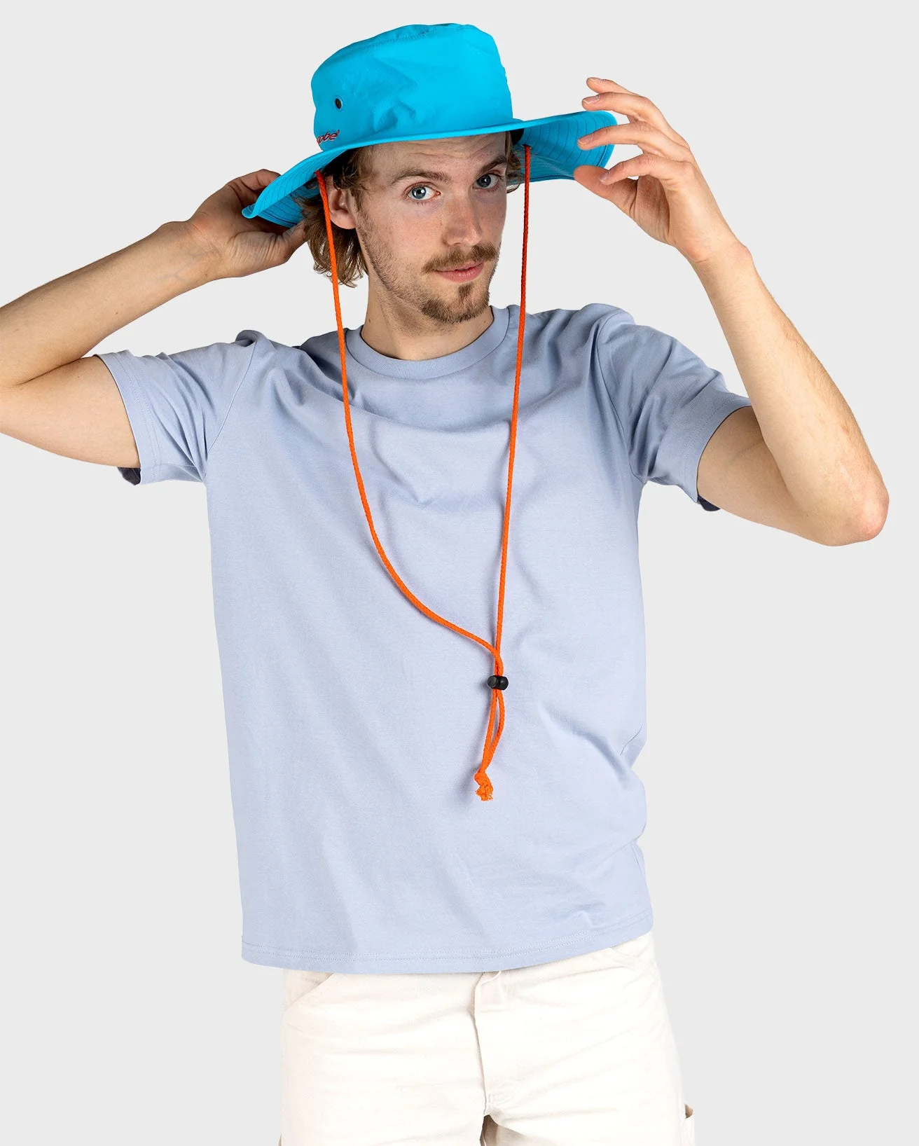 The stiff brim and UPF50+ rating provide protection from the sun, whilst its fast-drying properties and adjustable chin strap make it ideal for wet and windy days.